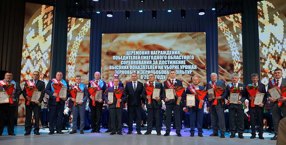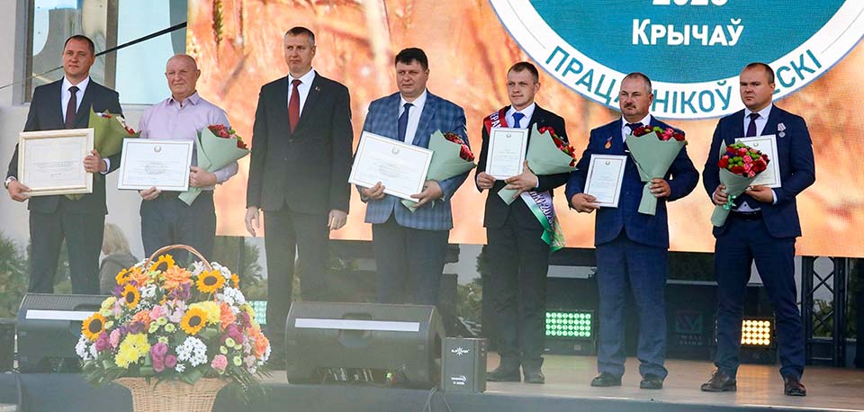 В это же время в кричевском Доме культуры проходила церемония чествования и награждения победителей областного соревнования за достижение высоких показателей на уборке урожая зерновых и зернобобовых культур по отдельным номинациям.