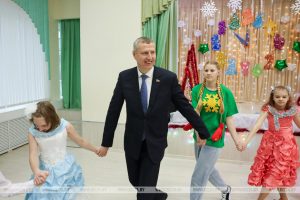 Самая добрая, наполненная волшебством акция «Наши дети» шагает по стране. Сегодня в рамках рабочей поездки в Могилевскую область глава администрации Президента Дмитрий Крутой поздравил воспитанников Белыничской специальной школы-интерната, где прошло театрализованное представление.