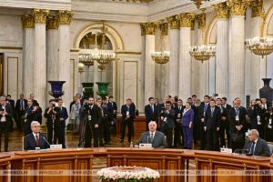 Как сообщалось БЕЛТА, рабочий визит Александра Лукашенко в Россию начался 21 декабря. В этот день глава государства принял участие заседании Высшего Евразийского экономического совета. Белорусский лидер обозначил приоритетные направления работы ЕАЭС на ближайшую пятилетку, а также поставил вопрос о выполнении в союзе прежних договоренностей и общем настрое на интеграцию.